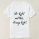 Dieses wunderbare "Mr. Right and Mrs Always Right" Design ist ein wunderbares Geschenk für Paare, besonders für Ehemann und Ehefrau Paare. Das Beste für weißen Hintergrund.