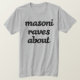 Die Masoni Rave über Logo in dunkelgrauem auf einem Heidegrau-T - Shirt.