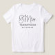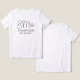 Modernes und lässiges schwarzes Kalligraphieskript "Mrs." Frauenehemmer-T-Shirt mit individuellem Text, der mit dem neuen verheirateten Nachnamen und dem festgelegten Hochzeitstermin personalisiert werden kann. Ideal für frisch gezogene Flitterwochen und darüber hinaus!