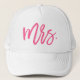 Dieses Hutdesign eignet sich perfekt für die neu verheiratete Braut und zeichnet sich durch "Mrs." in einem hellrosa Pinselskript aus.