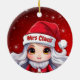 Mrs Santa Claus! Celebrate the holiday season with this festive round ceramic red ornament featuring an endearing cartoon graphic wearing a cute Santa hat. Perfect for decorating your tree or as a thoughtful gift, this whimsical decor makes a cherished keepsake for years to come. Customize by changing the text, the font, the font color, or remove the text. You can even transfer this design onto other products. Enjoy this design your way! 🤶🎄