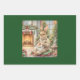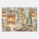 Unique design featuring watercolor style adorable rabbit celebrating Christmas. Detailed image of a whimsical fantasy scene of a female rabbit finishing her Christmas embroidery. All age appropriateness.