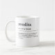 Diese minimalistische Keramik-Tasse enthält eine Wörterbuchstil-Definition des japanischen Begriffs "Mudita" in Schwarz-Weiß-Schrift und sauberes und einfaches Design. Das japanische Wort mudita hat in der englischen Sprache kein Äquivalent und verweist auf die aufrichtige und vollkommene Freude, die man in der Freude am Erfolg, Glück oder Wohlbefinden anderer erlebt hat. Diese mudita Wort Definition Kaffee Tasse ist ein großartiges Geschenk für Yoga-Liebhaber, spirituelle Suchende Freunde des gedanklichen Lebens und der Meditation, sowie alle japanischen Liebhaber oder Wörterbuchliebhaber, die gerne ihren Wortschatz erweitern.