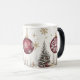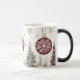 Celebrate the magical and festive holiday season with our personalized foto mug. Our vintage holiday design feature a farm landscape of Christmas trees, this Christmas pattern feature a farm Christmas scene with a farm, a red barn, children playing and throwing snowballs, Christmas trees and a red vintage truck