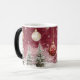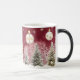 Celebrate the magical and festive holiday season with our personalized foto mug. Our vintage holiday design feature a farm landscape of Christmas trees, this Christmas pattern feature a farm Christmas scene with a farm, a red barn, children playing and throwing snowballs, Christmas trees and a red vintage truck