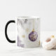 Celebrate the magical and festive holiday season with our personalized foto mug. Our vintage holiday design feature a farm landscape of Christmas trees, this Christmas pattern feature a farm Christmas scene with a farm, a red barn, children playing and throwing snowballs, Christmas trees and a red vintage truck