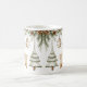 Celebrate the magical and festive holiday season with our personalized foto mug. Our vintage holiday design feature a farm landscape of Christmas trees, this Christmas pattern feature a farm Christmas scene with a farm, a red barn, children playing and throwing snowballs, Christmas trees and a red vintage truck