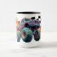 Vibrant graffiti-painted monster truck motif in neon colors and fiery flames. Bold streetwear for truck lovers, car clubs, and festival outfits.