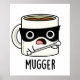 Mugger Funny Mug Puns verfügt über eine niedliche Tasse, die eine Maske trägt und einen Rührer hält! Perfektes Geschenk für Familie und Freunde, die Liebe niedliche Tasse Schüsse.
