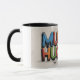 Ein lebendiges, handgezeichnet Design mit dem spielerischen Satz "Mugger Hugger" in fetten, farbenfrohen Buchstaben - perfekt für Kaffeeliebhaber, die ihre Tasse mit Freude und Wärme umsetzen.