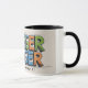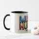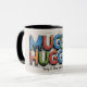 Ein lebendiges, handgezeichnet Design mit dem spielerischen Satz "Mugger Hugger" in fetten, farbenfrohen Buchstaben - perfekt für Kaffeeliebhaber, die ihre Tasse mit Freude und Wärme umsetzen.