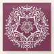 Dieses weiße Mandala sitzt auf einem dunkelvioletten Hintergrund. Die Farbe ist tief und raffiniert. Teil der Sammlung Jarn Mandala.