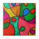 Die mehrfarbige abstrakte Keramik-Kachel zeichnet sich durch ein dynamisches Zusammenspiel lebendiger Farben aus, darunter Blues, Rot, Gelb, Grüntöne und Purpur. Das Design weist ein fließendes, wirbelndes Muster auf, das an die moderne abstrakte Kunst erinnert und Gradienten, Spritzen und einen Bio Fluss umfasst, der der Komposition Tiefe und Energie verleiht. Die Oberfläche erscheint glänzend mit einer leicht strukturierten Oberfläche, die den lebendigen und künstlerischen Charakter des Stückes unterstreicht.