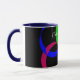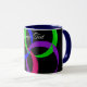 This geometric coffee mug features a multi color 3D circular interchange theme. Text customization and additional mug colors options are available.