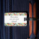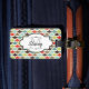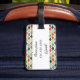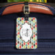 Dieser schöne Gepäckanhänger kennzeichnet einen ausgebogten Entwurf von Rotem, von Blauem, von Braunem, von Grünem und Weiß auf Front und Rückseite mit Bereichen, die Sie mit Ihrer Namen- und Nachnameinitiale sowie Telefonnummer oder voller Adresse besonders anfertigen können.