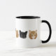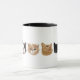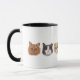 Eine Tasse, die Porträts der Platzkatzen sechs Tabbys kennzeichnet.