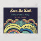 Multicolor 70's groovy psychedelic Save the Date Postkarte