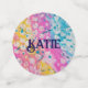 Modernes Design mit rosa, blau und gelb lackiertem Hintergrund und Spritzer mit weißem Aquarellpapier. Personalisierbar.