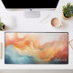 Die Personalisierte Multicolor Liquid Waves Mat. Ein abstraktes Ensemble aus Orange, Creme und Blau bildet ein faszinierendes Muster flüssiger Wellen und schafft so eine optisch ansprechende Darstellung. Personalisieren Sie dieses Stück mit Ihrem Namen für eine wirklich einzigartige Ergänzung zu Ihrem Arbeitsbereich. Die sanften Farbtöne harmonieren nahtlos und sorgen für eine lebendige Farbenpracht, die sowohl Inspiration als auch Ruhe bietet. Mit dieser faszinierenden Matte verwandeln Sie Ihren Arbeitsbereich in einen Ort der Kreativität und Ruhe.