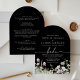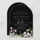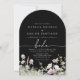 Diese vielfarbige Boho-Herberge mit ihren Vorder- und Rückseite ist perfekt für eine rustikale Hochzeit. Das Design besteht aus grünen, rosa, gelben, lila, weißen, wasserfarbenen Wiesen-Blume in einem schwarzen Hintergrund. Rett Papier, indem man mehr Details auf der Rückseite der Einladung anstatt auf einer separaten Gehäusekarte angibt.