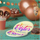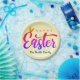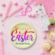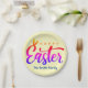 Multicolor Happy Oster- Regenbogenfarbe Happy Oaster Buchstaben mit sonnigen Ohren, gelber Hintergrund