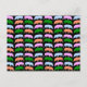 Auf dieser Postkarte finden Sie eine Reihe verschiedener Cartoon-Stilschweine. Jeder hat seinen Kopf abgelegt, um sich das Essen, das er finden kann, zu holen. Die Hunde sind abwechselnd in rosa und blau, grün und orange gehalten.