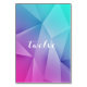 Sharp und moderne Jewel Tones Wedding Tischnummer Card mit einem vielfarbigen (blauen, lila, rosa und türkisfarbenen) funky geometrischen Dreieck Hintergrund. Dieses elegante und einfache Design ist eine einzigartige Wahl für eine moderne Hochzeit. Einfach mit den entsprechenden Tischnummern anpassen. Klicken Sie auf "Anpassen", um weitere Personalisierungsoptionen zu erhalten.