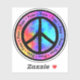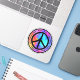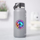 Hippie-Aufkleber - Friedenszeichen mit umliegendem Text auf mehrfarbigem Hintergrund.