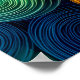 Colorful spiral patterns intertwine, creating a visually dynamic composition. The use of bright colors adds depth and vibrancy to the design.