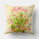Bunch of wildflowers and text Wildflowers. Colorful and lovely throw pillow with colorful meadow wildflowers on beige background.