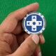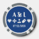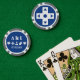 Geben Sie den Gästen, Hochzeitsjungfrauen, Trauzeugen oder jedem anderen, der Ihre Hochzeit oder besondere Veranstaltung besucht oder dabei hilft, eine lustige Leckerei mit diesen individuellen Poker Chips. Auf einer Seite des Poker-Chips befindet sich ein weißes Richtungs-Pad oder ein D-Pad auf einem reichen saphir blauen Hintergrund. Auf der anderen Seite gibt es ein Beispiel-Set von Initialen und Datums, getrennt durch ein Muster von Videospielsymbolen, darunter ein D-Pad, ein 8-Bit-Herz, Joystick und Computermaus. Der Sample-Text kann mit Ihren eigenen Daten oder einer speziellen Nachricht Ihrer Wahl angepasst werden, um ein einzigartiges und persönliches Token zum Gedenken an Ihren großen Tag zu erstellen. Dieses Design passt zu jedem Produkt aus der Serie Multiplayer Mode in Blue, sodass Sie Ihre Spiele-thematische Hochzeit oder besondere Veranstaltung so koordiniert wie Sie möchten.