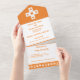 Mit dieser einmaligen Einladung und der RSVP-Karte können Sie Ihre Veranstaltung mit Touch und Freude erleben. Auf der Innenseite befindet sich ein weißes D-Pad auf einem hellorangen Hintergrund über einem Bereich mit Beispieltext, der für Ihren speziellen Tag angepasst werden kann. Im unteren Bereich des Einladens befindet sich ein herausnehmbares, postkartengroßes Stück, das einen Beispieltext über einem orangefarbenen Rand mit Joysticks, Computermäusen, D-Pads und 8-Bit-Herzen hat, die unten verstreut sind. Draußen befindet sich eine ähnliche Grenze von Videospielsymbolen auf orange unterhalb der Bereiche, in denen Sie Briefmarke, Standard und Rücksendeadressen sowohl für die Einladung als Ganzes als auch für den UAWG hinzufügen würden. Die Klappe zum Umklappen und Siegel der Karte hat einen Single-D-Pad auf einem hellorangen Hintergrund mit einem Beispiel-Set von Initialen, die Sie anpassen können, um eine endgültige persönliche Touch, die Ihre Liebe für Spiele und einander zeigt. Achten Sie darauf, die Erholung des Multiplayer-Modus im Orange-Set für andere koordinierende Produkte, einschließlich Rücksendeadressen-Aufkleber, auszuschalten.