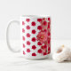Eine Tasse ist eine Tasse, die üblicherweise zum Trinken von heißen Getränken wie Kaffee, heißer Schokolade oder Tee verwendet wird. Tasse haben normalerweise Griffe und halten eine größere Menge an Flüssigkeit als andere Tassen. Ein Design mit mehreren roten Rosas.