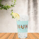 Hübsches Aalglas weist florale Wasserfarbenbriefe auf, die M-U-M mit anpassbarem "Extra" in modernen Schriften auf pastellblauem Hintergrund auszeichnen