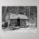 McLeod's cabin, Happy Hollow, Hot Springs, Arkansas, 1901. "Mune Shine Still" steht auf dem Schild über der Tür. Jägerhütte mit Mann, Gewehr und Reh.