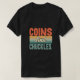 Dieser T - Shirt zeigt ein cleveres Wortspiel mit Münzbildern und Comedian-Elementen. Ein witziges Design für diejenigen, die ein gutes Wortspiel und ein wenig freie Veränderung schätzen.
