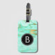 Imitats Mint und Gold Marmor Monogram Moderne Gepäcktasche Tag. Diese Taschenmarke ist ideal für Zurück in die Schule, Arbeit oder Reisen.