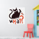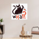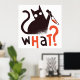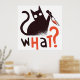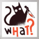 Ein lustiges Design mit einer schwarzen Katze, die ein Messer hält, und dem Wort WHAT?