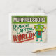 Eine lustige Murfreesboro Tennessee Vintage Reise-Postkarte mit einem freundlichen Roboter mit lustigen Retro-Text, der sagt: "Murfreesboro, Roboter-Hauptstadt der Welt!"