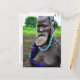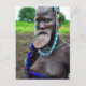 Mursi Frau mit Lippenplatte und Karikatur Postkarte