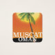 Muscat Oman Urlaubsposter einer großen untergehenden Sonne und einer Palme im mittleren Osten.