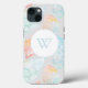Aquarellfarben Seashell Muster monogramm Gehäuse Handy in Schattierungen von Ozean und Sonnenuntergang.