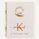 Ein beige Hintergrund. Dekoriert mit einer wasserfarbenen Muschel, Jakobsmuscheln mit Perle im Inneren. Personalisieren und fügen Sie einen Namen, einen Monogramm-Brief und ein Jahr. Der Name ist weiß geschrieben mit einem großen, modernen Handschrift Schrift mit Schrägstrichen. Der Monogramm-Brief in Grau. Für die Schule, arbeiten Sie als Skizze, Tagebuch und Journalismus. Um die Swashes behalten, löschen Sie nur den Beispielnamen, verließ die Leerzeichen oder Emoji's vor und nach dem Namen