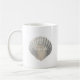 Strandhaus, Seehaus, Hütte oder Strandurlaub Zuhause Kaffee Tasse mit Meer Muschel mit "Beach Life" Typografie. Design von Jenn's Emporium.