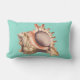 Muschel Lumbalkissen aus Strandconch mit gemusterter Rückseite und blaugrünem Hintergrund.