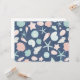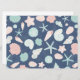 verschiedene Arten von handgemalten Muscheln auf blauem Hintergrund