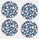verschiedene Arten von handgemalten Muscheln auf blauem Hintergrund