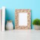 verschiedene Arten von handgemalten Muscheln auf blauem Hintergrund