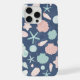 verschiedene Arten von handgemalten Muscheln auf blauem Hintergrund