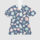 verschiedene Arten von handgemalten Muscheln auf blauem Hintergrund